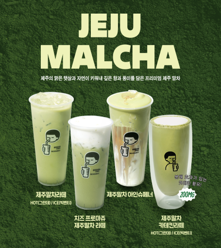 청정 제주산 말차의 쌉싸름한 풍미와 우유의 부드러움이 어우러진 라떼를 슈퍼size로 즐길 수 있는 제주 말차라떼