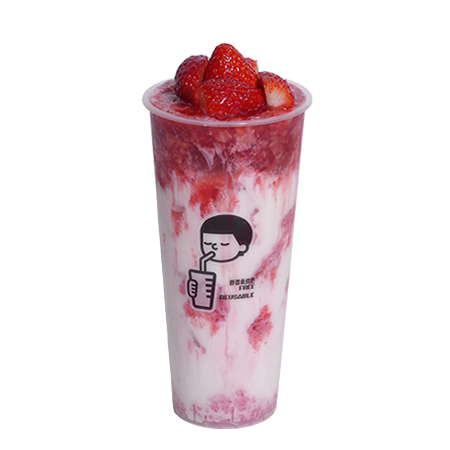 딸기 과육이 듬뿍 들어가 씹는 맛이 살아있는 부드러운 딸기크림 프라페