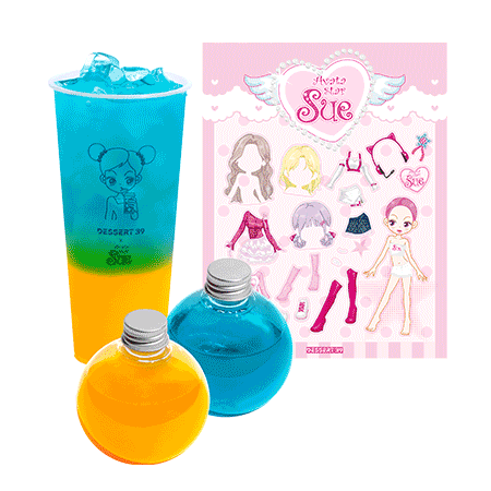 슈 전용 리유저블컵에 얼음을 담고, 옵션으로 선택한 마법물약 2종과 추억의 슈 옷 입히기 스티거를 제공하는 세트 메뉴