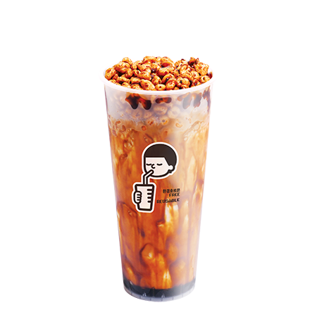 진하게 우려낸 홍차에 신선한 우유를 더한 프리미엄 로얄 밀크티에 쫀득한 펄이 추가된 음료