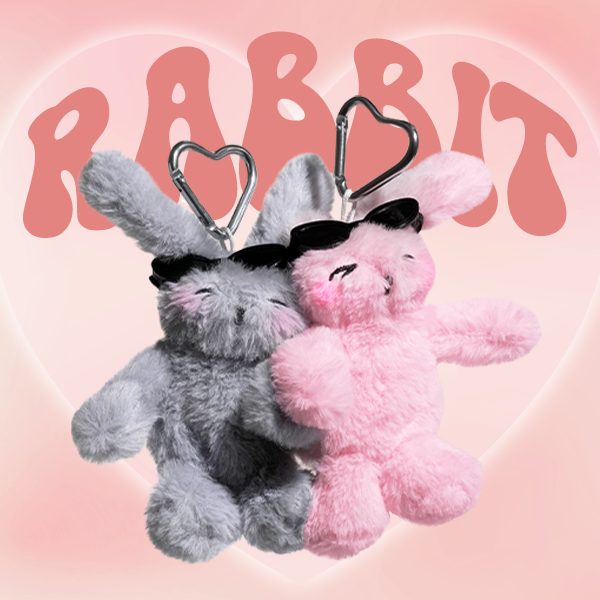 키링이나 컵홀더로 사용 가능한 MZ세대 취향 저격 토끼인형! 핑크와 그레이에 든 자석으로 둘이 착 붙는 커플템!